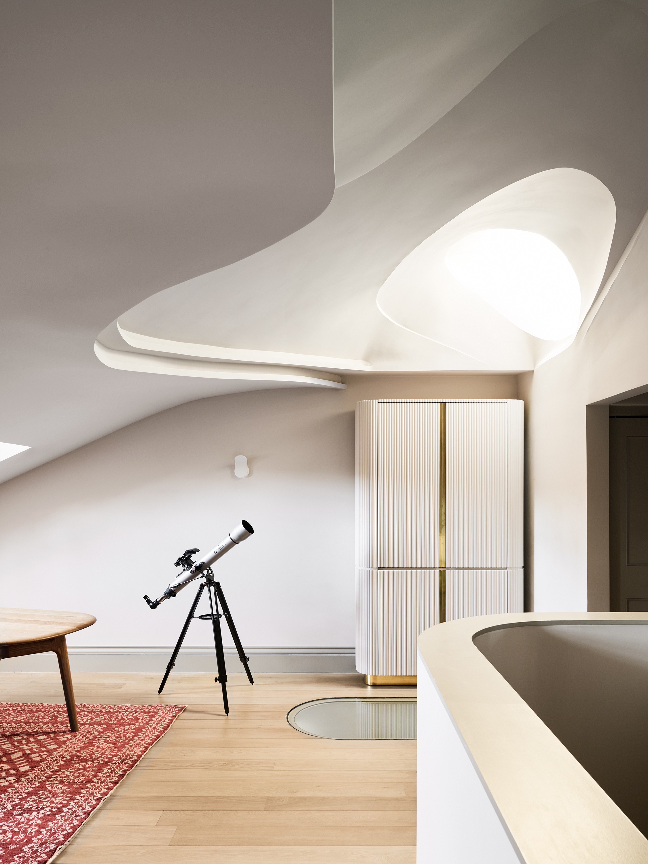Laviku designs bespoke architectural elements and fixtures as integral parts of the spatial system — lighting, surfaces, furniture and constructed objects developed in parallel with the architecture and interiors.